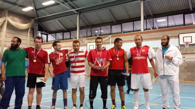 (The UBU Turkish Society President) Mesut and Co have won the Christmas 6-a-side Football Tournament organised by the University of Bristol Staff League (at the Bristol Grammar School on the 16th December 2012), winning all three of their knockout matches to claim the cup