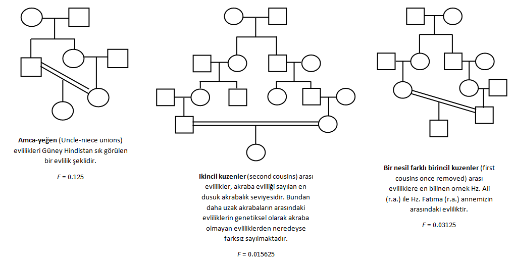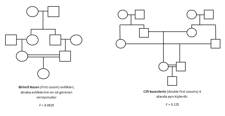 Klinik genetikte (Clinical Genetics), ikincil kuzenler (second cousin; Figür 1’e bakınız) ve/ya daha yakın akraba olanlar arasındaki evlilikler ‘yakın akraba evliliği’ (consanguineous marriage) tanımı altında toplanmaktadır. Fakat ‘yakın akraba’ derken, bu tanım icerisinde ‘ensest’ (ebeveyn-çocuk arası ya da kardeşler arası) ilişkiler bulunmamaktadır. Ulkemizde (ve dünyada) daha çok birincil kuzenler (first cousin; Figür 1) arasında evlilikler olmaktadır ve bu türden evliliklerin genel olrarak yapılan tum evlilikler içerisindeki oranı %20 civarındadır. Akraba evlilik oranları Türkiye’nin batısına nazaran, doğusunda yaşayanlar arasında daha yüksek oranlarda görülmektedir.